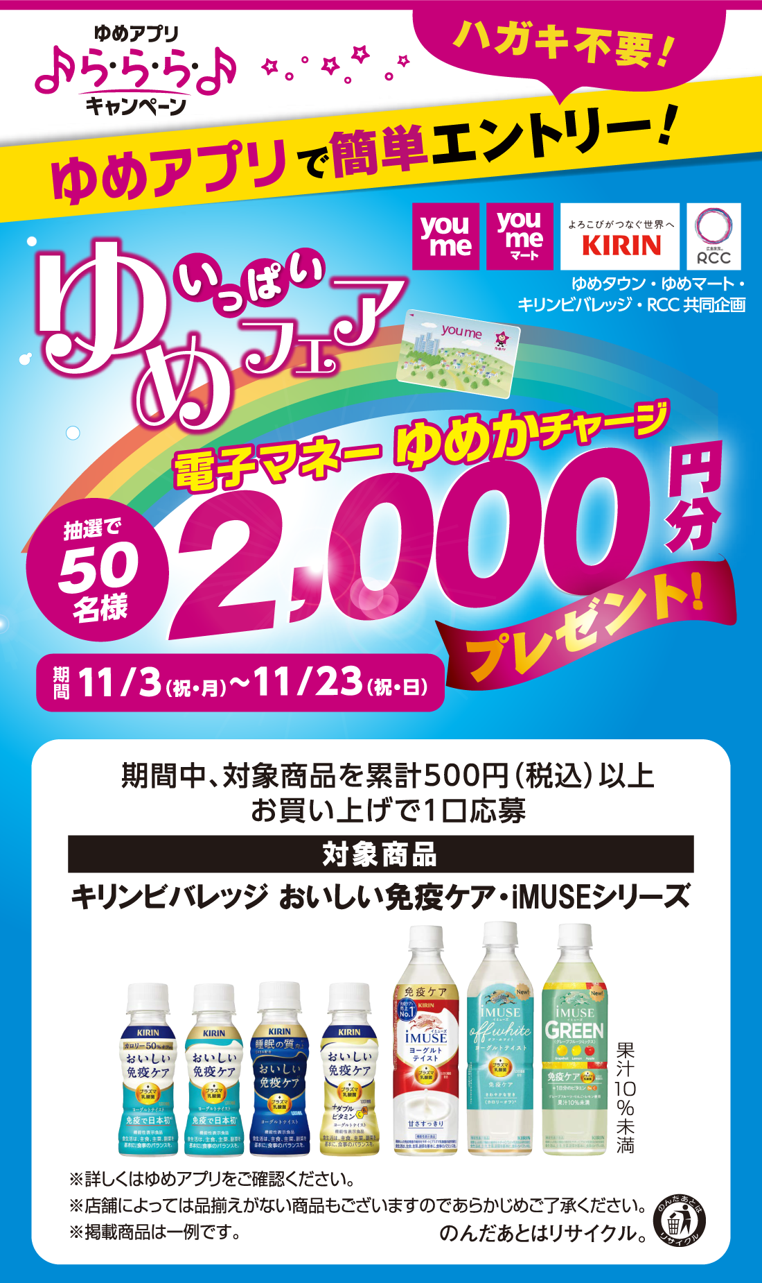 店舗総合TOP イベント/キャンペーン 【ゆめアプリ ら・ら・ら・キャンペーン】ゆめタウン・ゆめマート・キリンビバレッジ・RCC共同企画『ゆめいっぱいフェア』