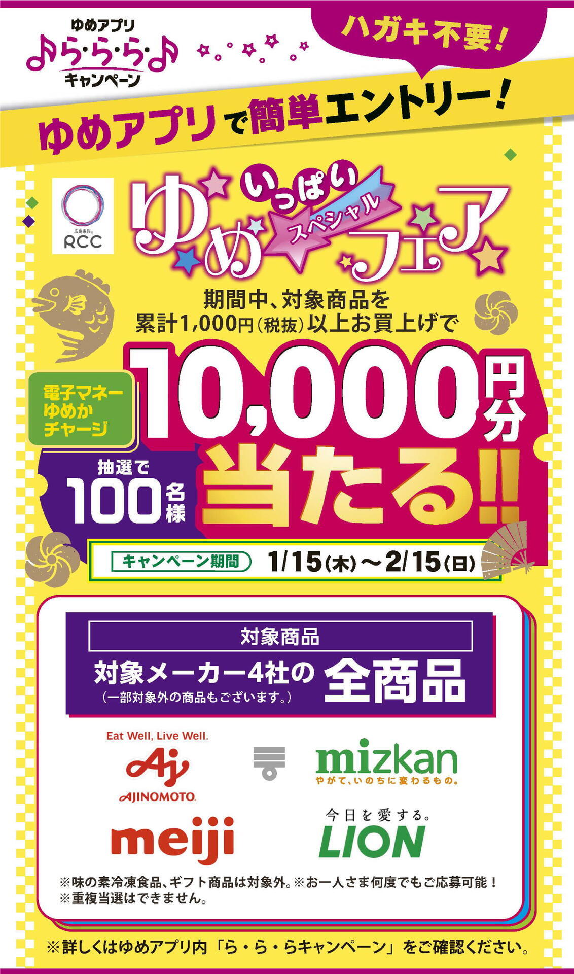 ※対象商品などキャンペーンの詳細は、ゆめアプリ「ら・ら・ら・キャンペーン」をご覧ください。