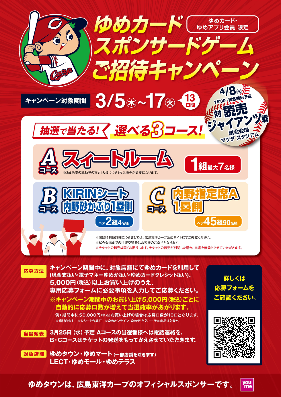 店舗総合TOP イベント/キャンペーン 【ゆめカード・ゆめアプリ会員 限定】『ゆめカードスポンサードゲーム』ご招待キャンペーン