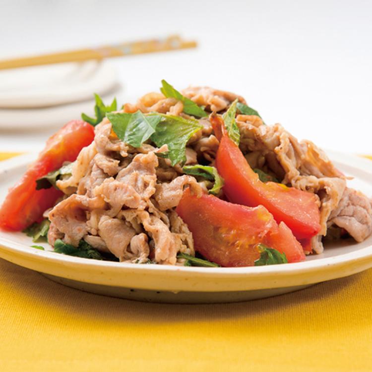 豚コマとトマトの塩こうじ炒め