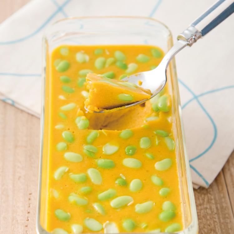 蒸しかぼちゃと枝豆のムース