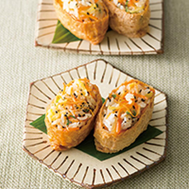 【にんじんしりしり明太子味アレンジ】しりしりにんじんのいなり寿司