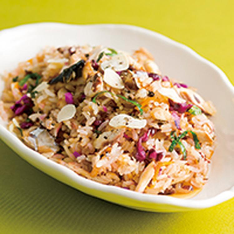 【さばのオイル煮アレンジ】さばと青じそのガーリックライス