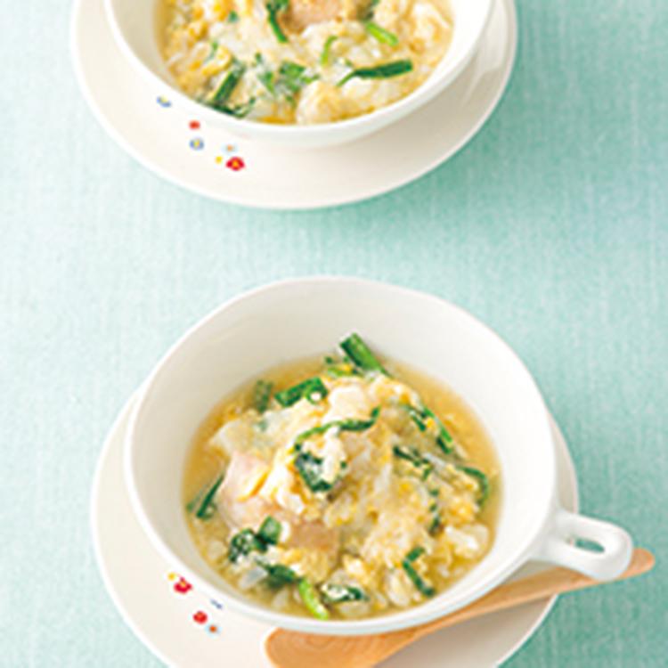 [アレンジレシピ] 長いもたたき味噌で洋風にら玉おじや