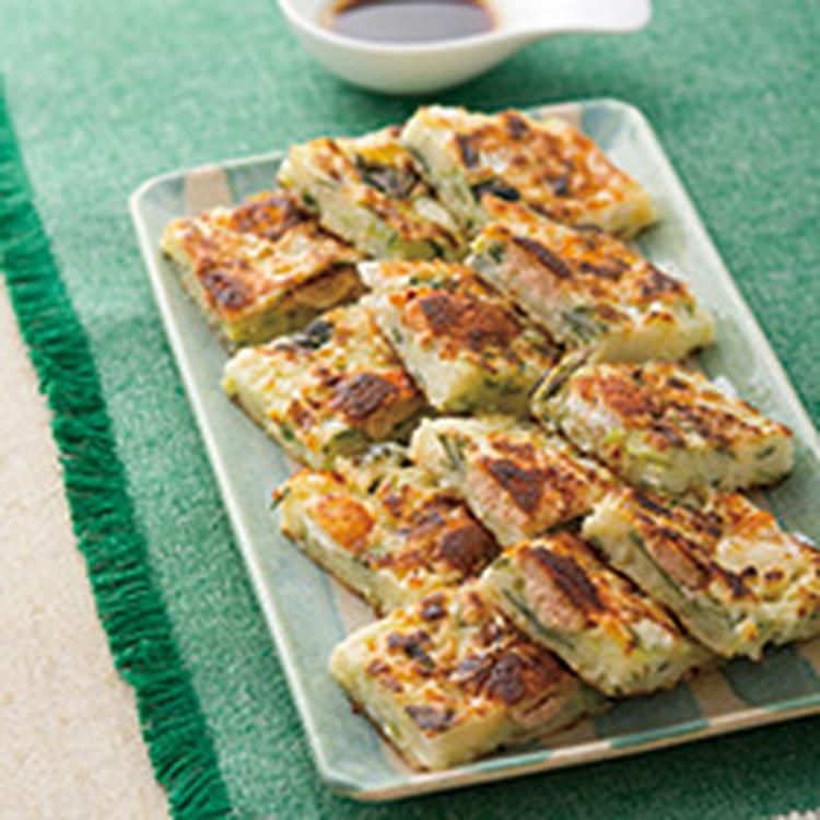 【ほうれん草と鯛の餅入り中華スープ アレンジ】ほうれん草と明太子のチヂミ