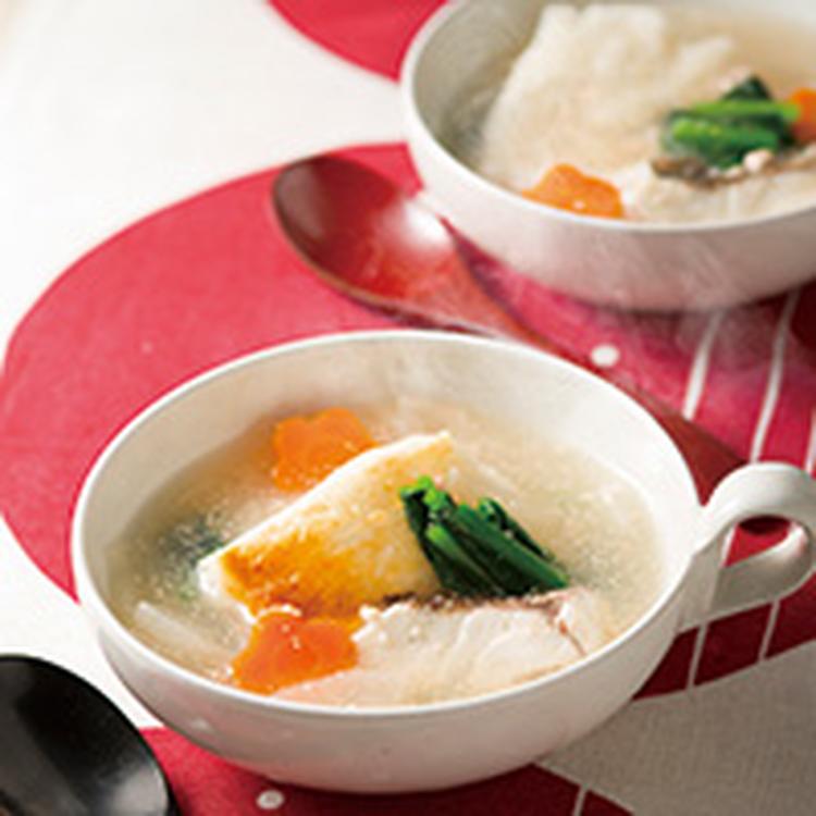 【ほうれん草と鯛の餅入り中華スープ アレンジ】ほうれん草と鯛のぶっかけとろろそば