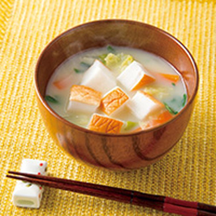 はんぺんと冬野菜の豆乳みそ汁