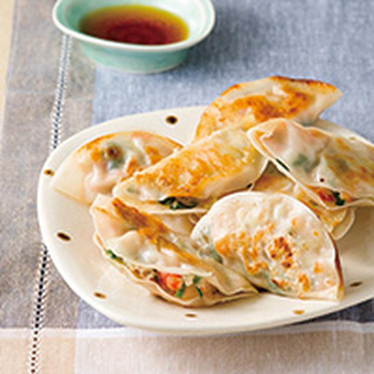 【チンゲン菜のおひたし アレンジ】チンゲン菜のぺったんこ海老ぎょうざ