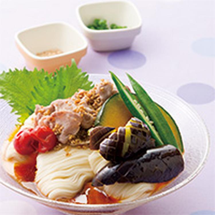 蒸しなす冷しゃぶそうめん