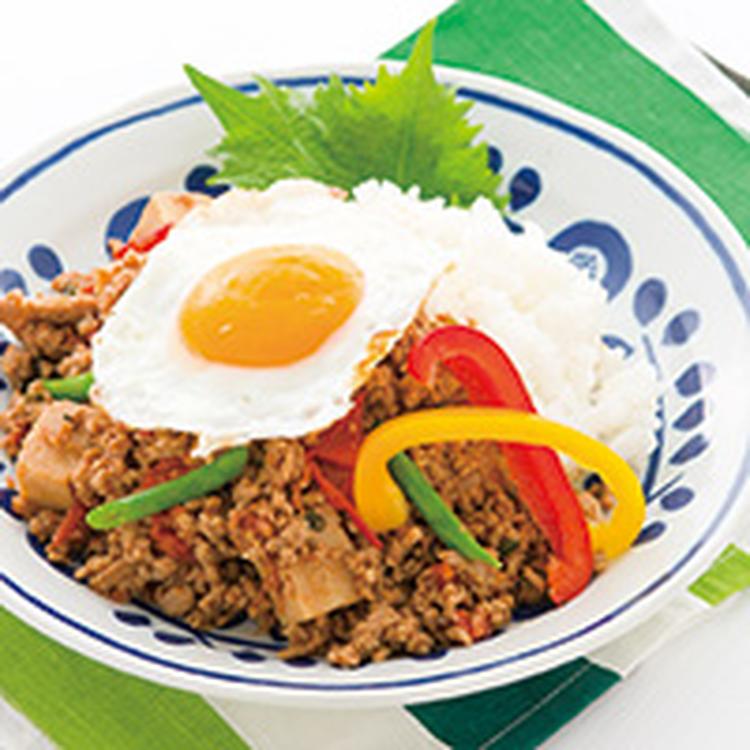 【冷凍トマト アレンジ】冷凍トマトで和風ガパオライス(タイ式バジル炒めご飯)