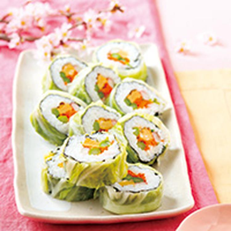 【茹で春きゃべつ アレンジ】茹で春きゃべつの巻き寿司