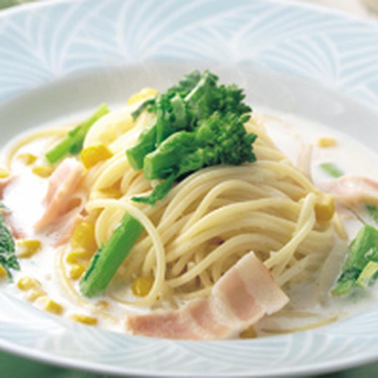菜の花とベーコンのスープパスタ