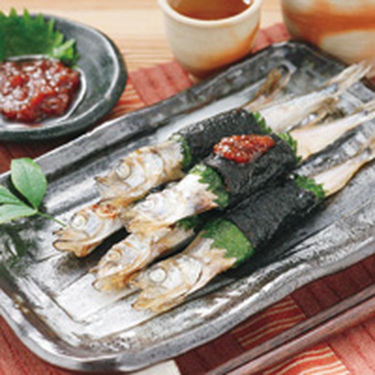 ししゃもののり巻き梅ダレ添え