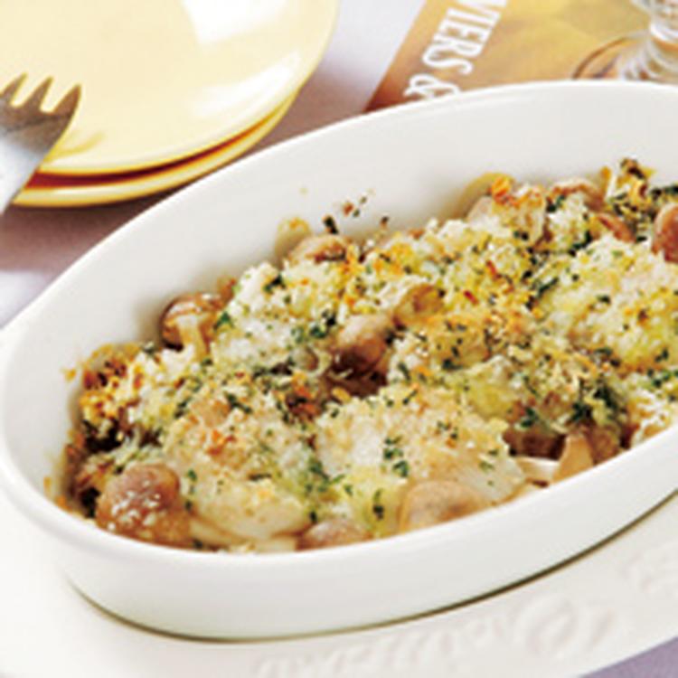 さつまいもときのこのクリームポットパイ