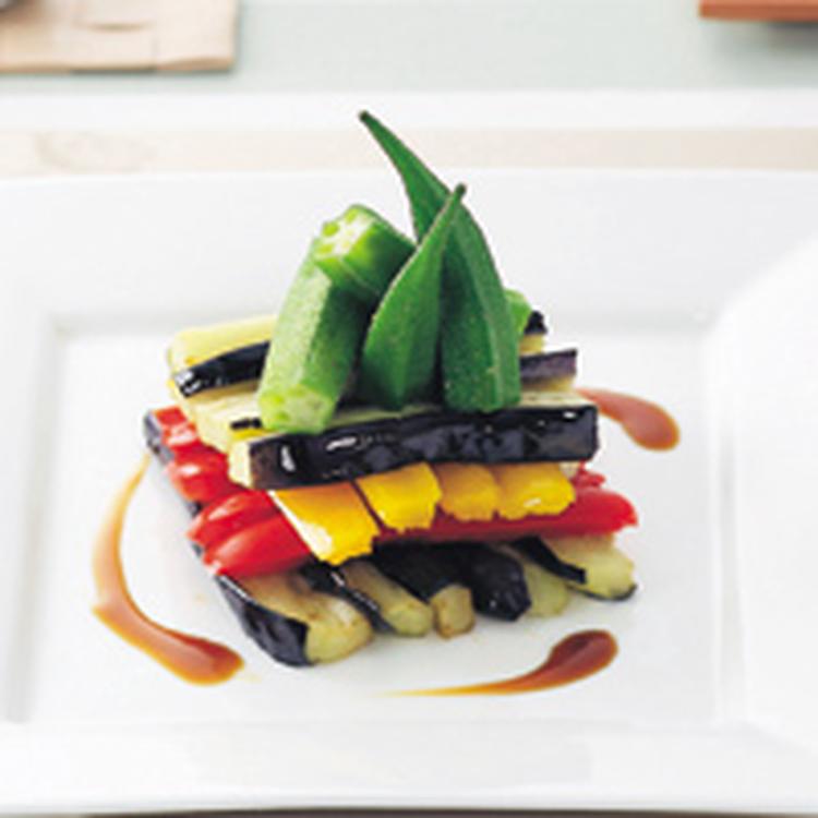 夏野菜の素揚げサラダにんにくしょうゆ