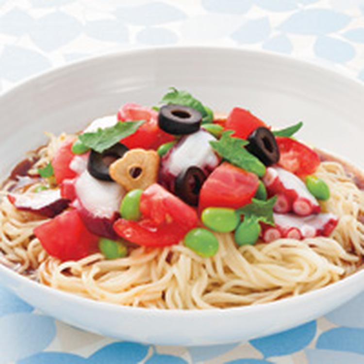 タコとトマトの冷やし中華
