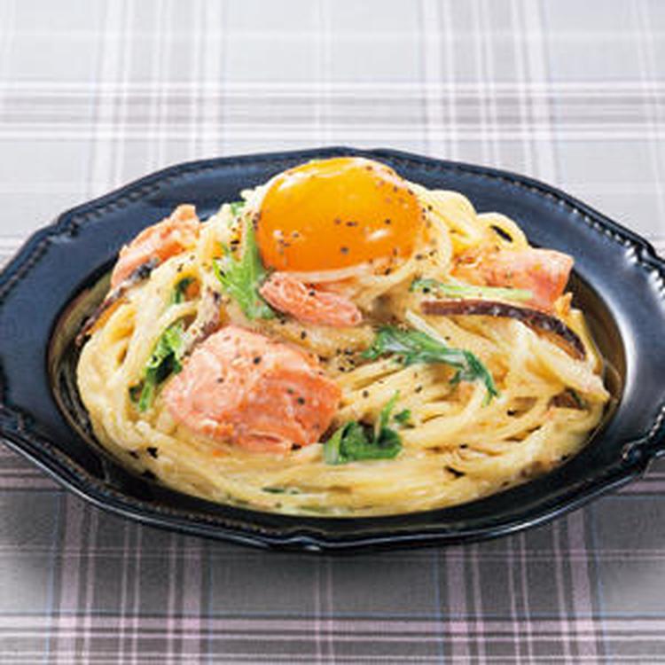 鮭としいたけの濃厚カルボナーラ風パスタ