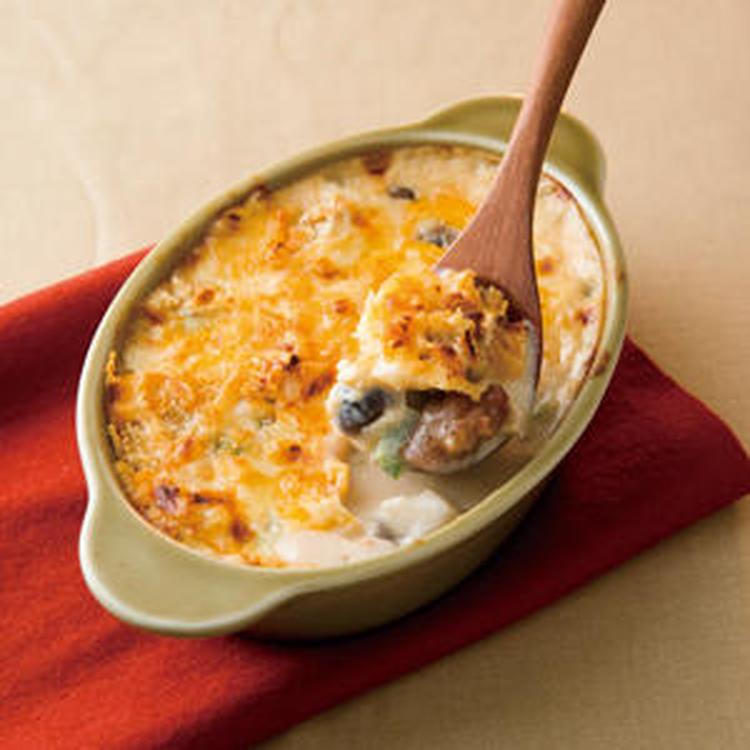 やきとり缶と旬野菜のグラタン