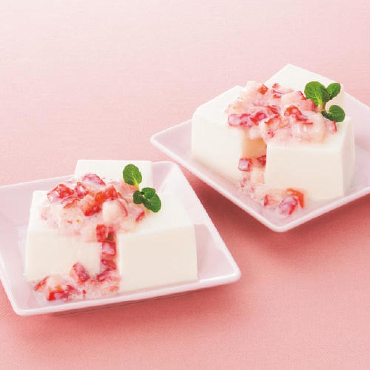 練乳ミルク寒天のイチゴソースかけ