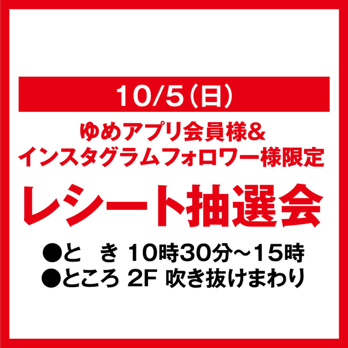 ゆめアプリ会員様&インスタグラムフォロワー様限定 レシート抽選会