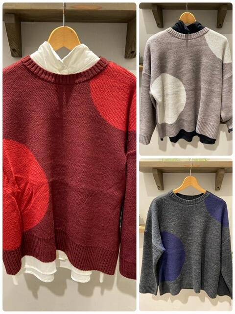 ふっくらとしたやわらかな風合いのニット生地でほどよい厚みがある『ウール混ニットビッグドットプルオーバー』です♪♪