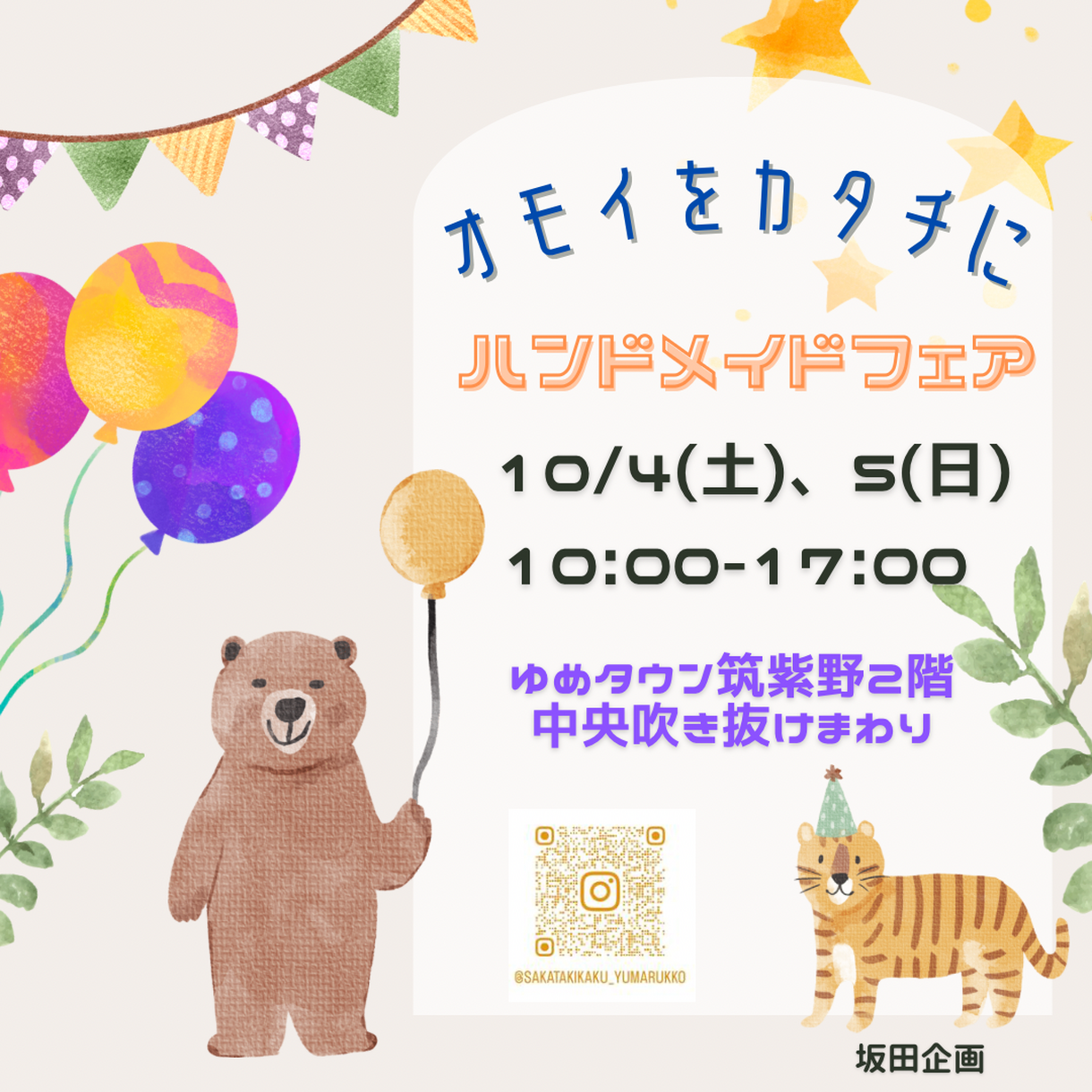 10月4日(土)~10月5日(日)10時~17時2階吹き抜け周りにて開催いたします☆彡アクセサリー、雑貨、ヘアリボン