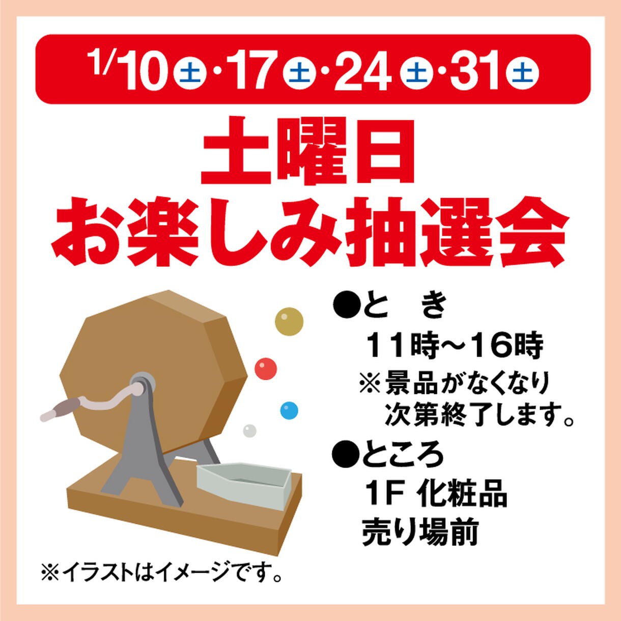 ※1/3(土)の土曜日抽選会はお休みさせていただきます。