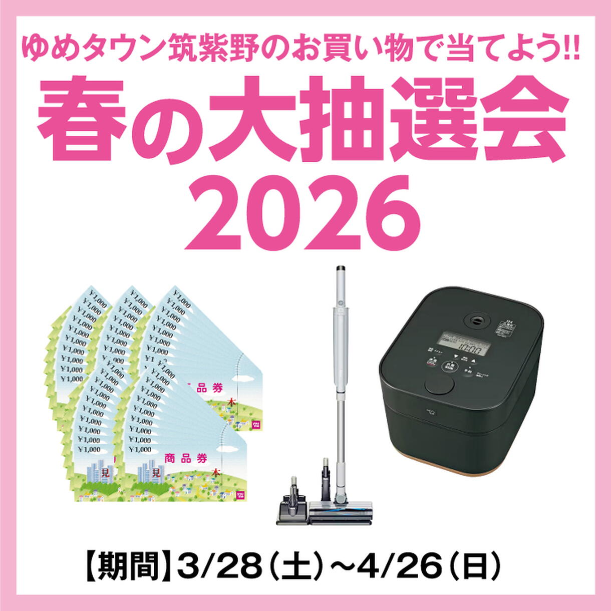 ゆめタウン筑紫野のお買い物で当てよう!! 「春の大抽選会2026」