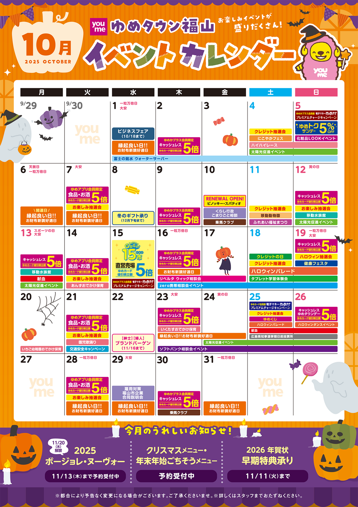 ゆめタウン福山 イベント/キャンペーン 10月 イベントカレンダー
