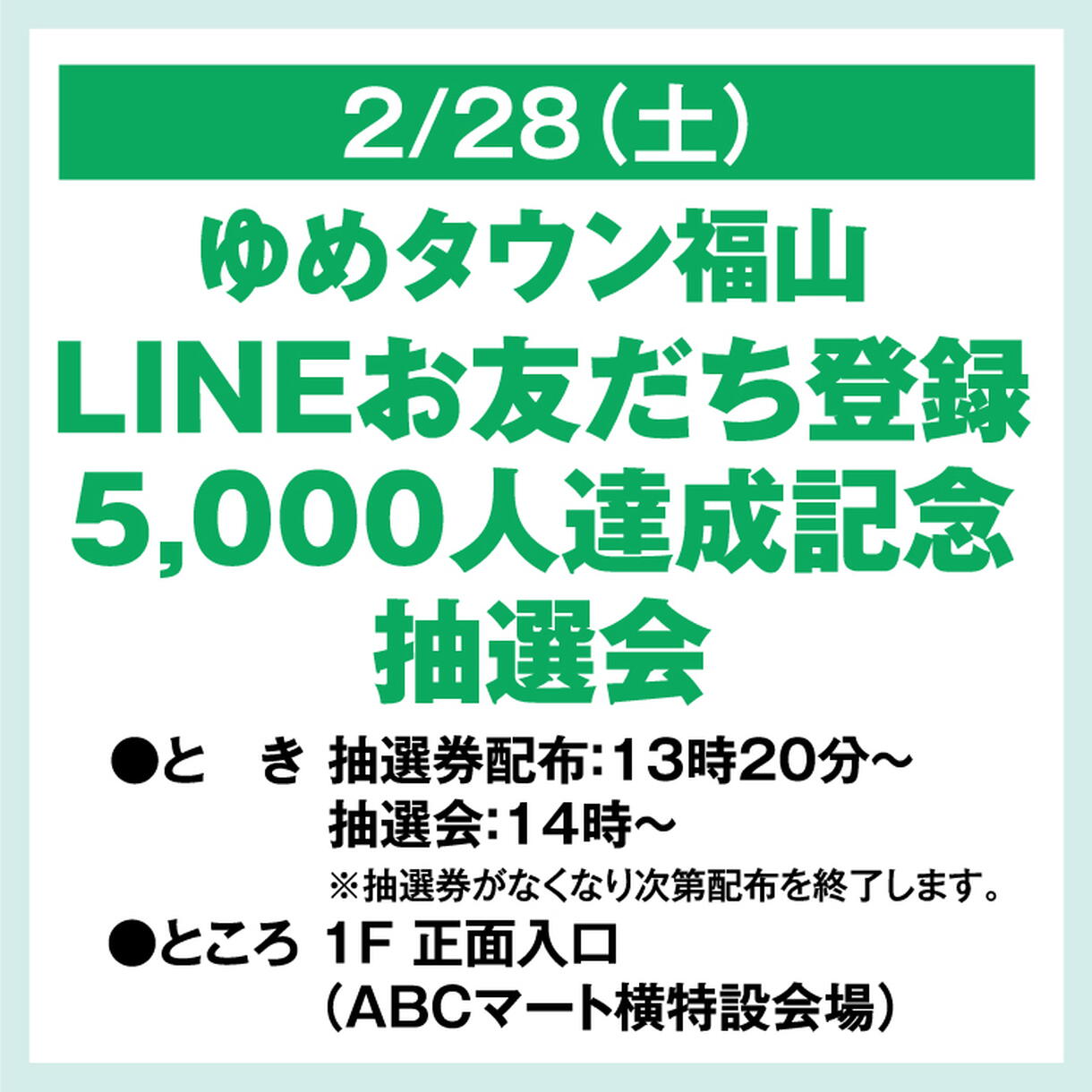 ゆめタウン福山LINEお友だち登録5,000人を記念して抽選会を開催!