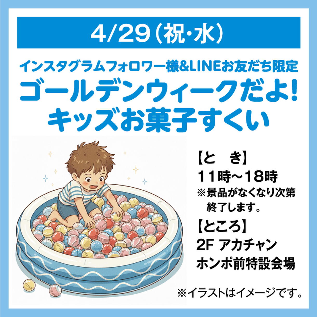 インスタグラムフォロワー様&LINEお友だち限定 ゴールデンウィークだよ! キッズお菓子すくい