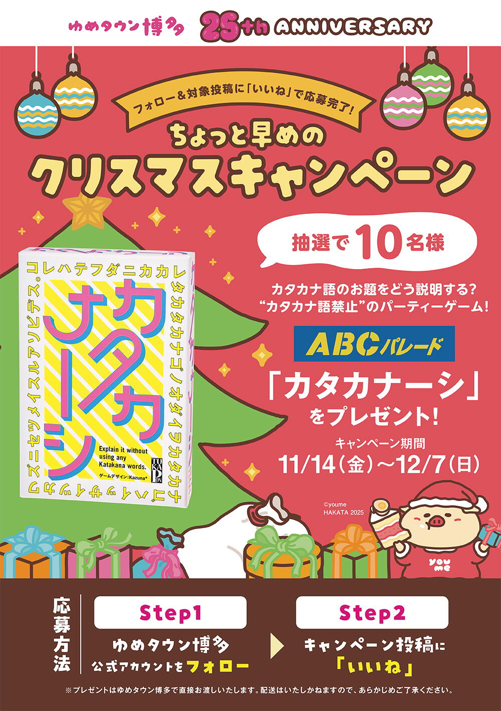 12/7(日)まで!ゆめタウン博多 公式インスタグラム ちょっと早めのクリスマスキャンペーン
