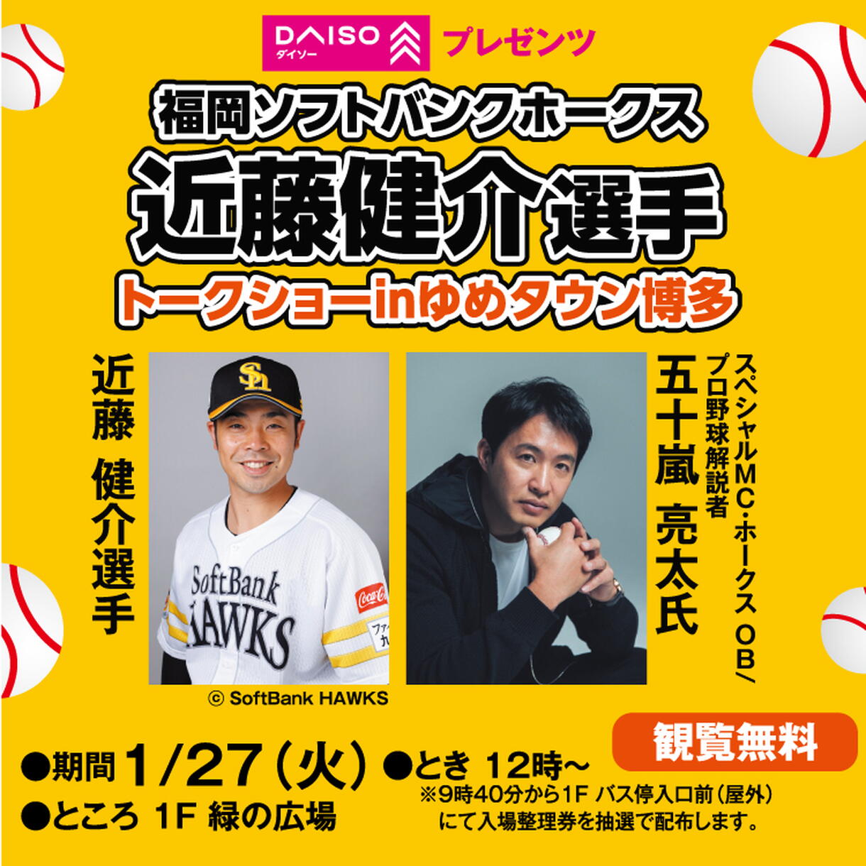 ゆめタウン博多にて福岡ソフトバンクホークス近藤健介選手のトークショーを開催します。