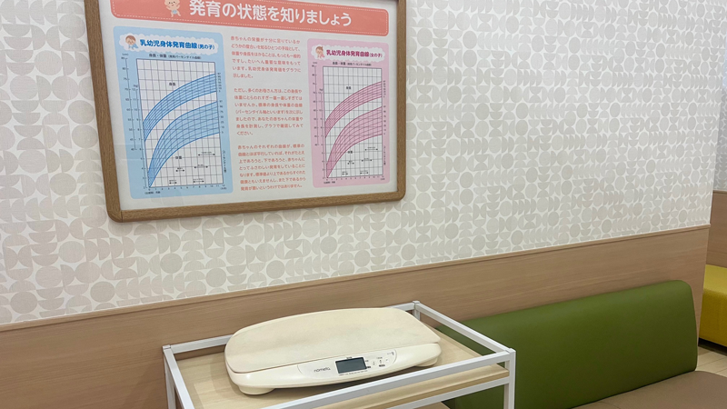 お子さまの成長を確認できる体重計も設置しています。