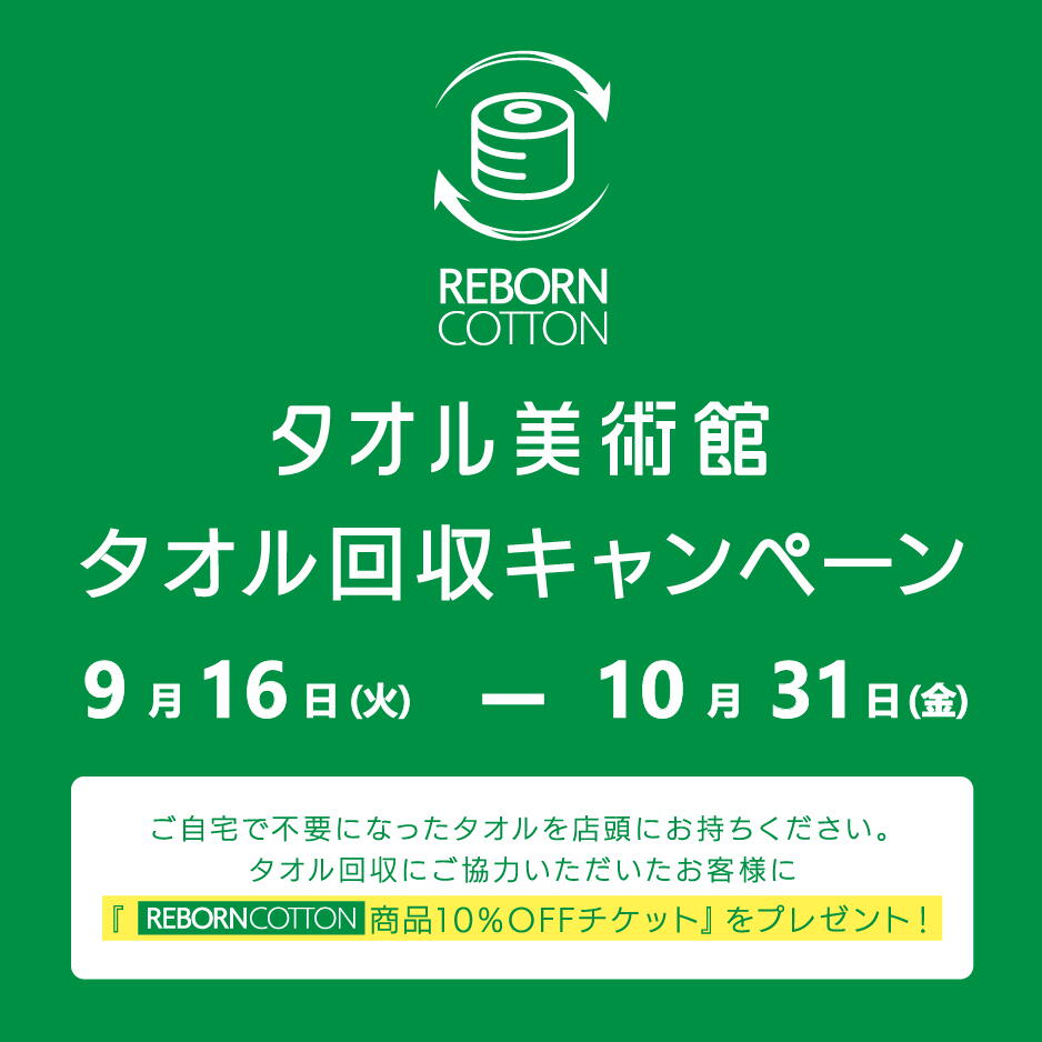 タオル美術館では9/16(火)~10/31(金)の期間中タオル回収キャンペーンを実施しております。