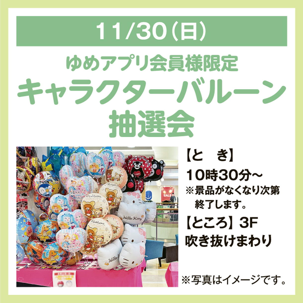 ゆめアプリ会員様限定 キャラクターバルーン抽選会