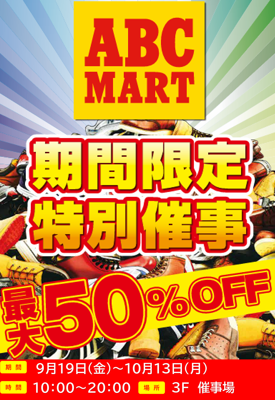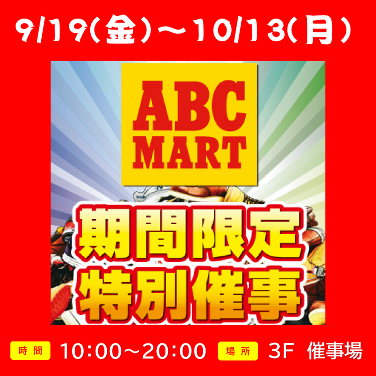 9/19(日)~10/13(祝・月) ABCマート 期間限定特別催事