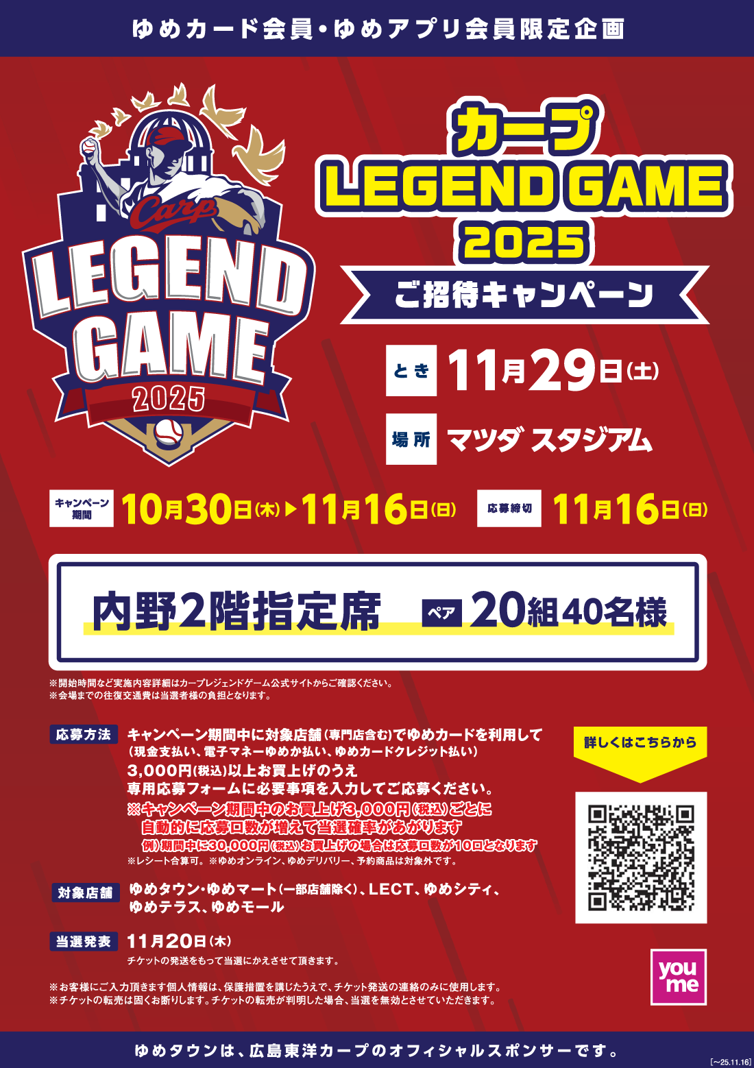 【ゆめカード会員・ゆめアプリ会員 限定企画】『カープ LEGEND GAME 2025』ご招待キャンペーン