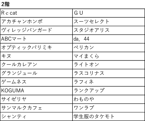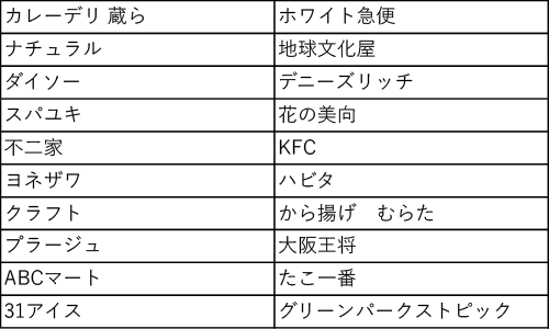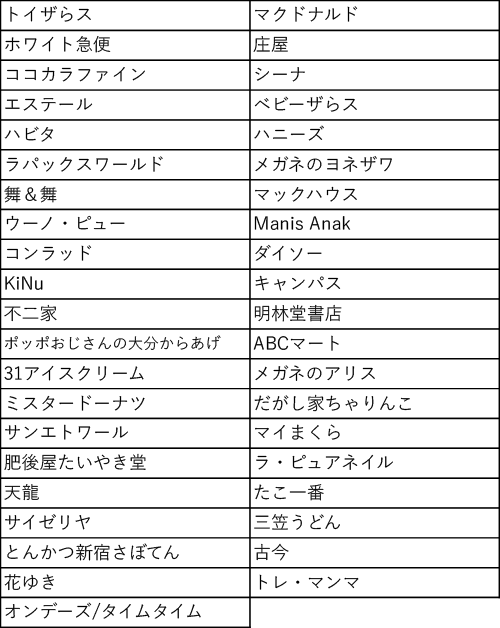 ご利用可能専門店一覧