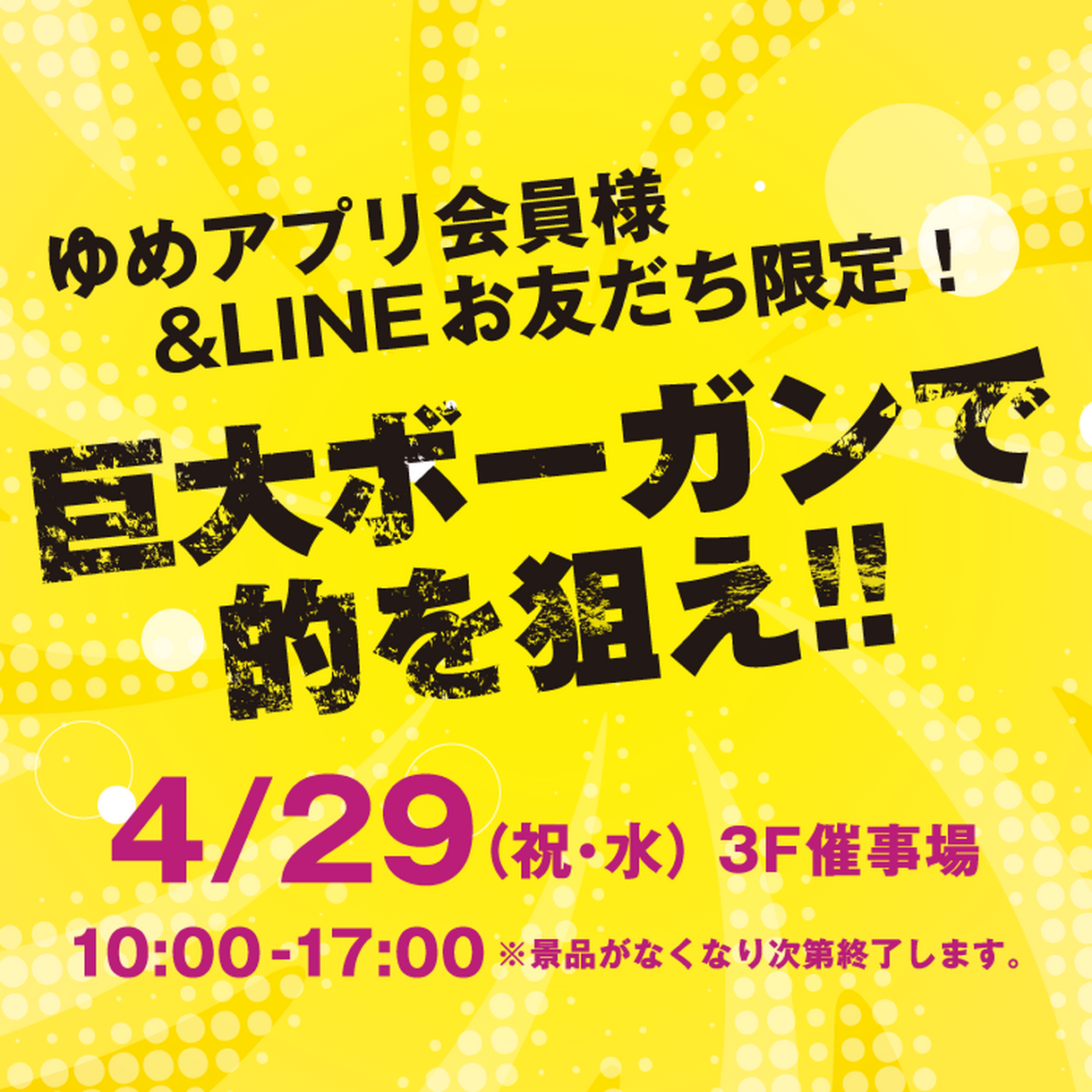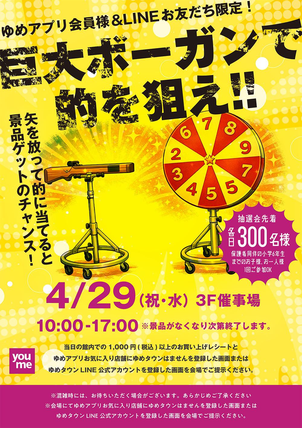 4/29(祝・水) ゆめアプリ会員様&LINEお友だち限定 巨大ボーガンで的を狙え!!