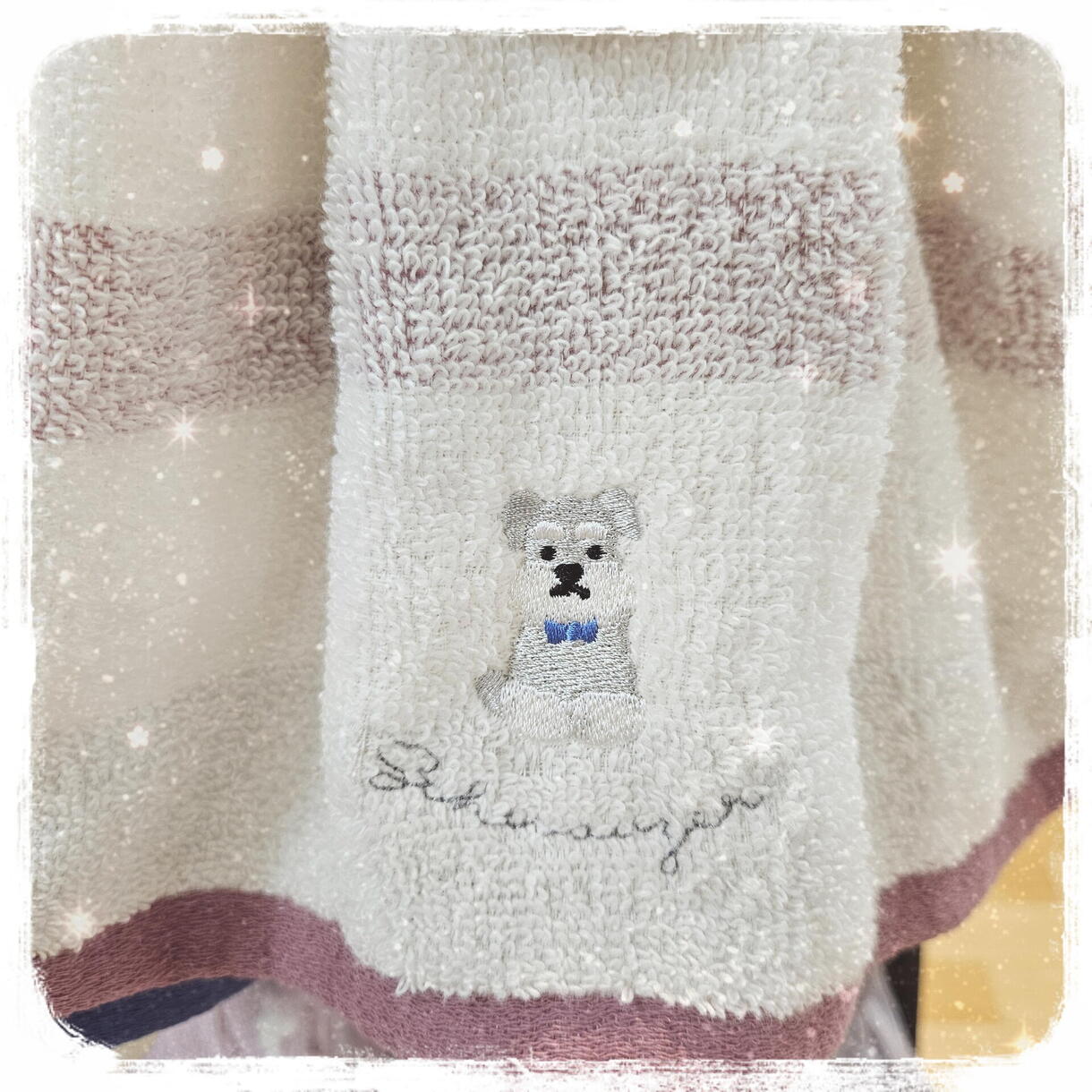 シュナウザーやクマ、お花の刺繍が可愛いので