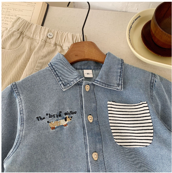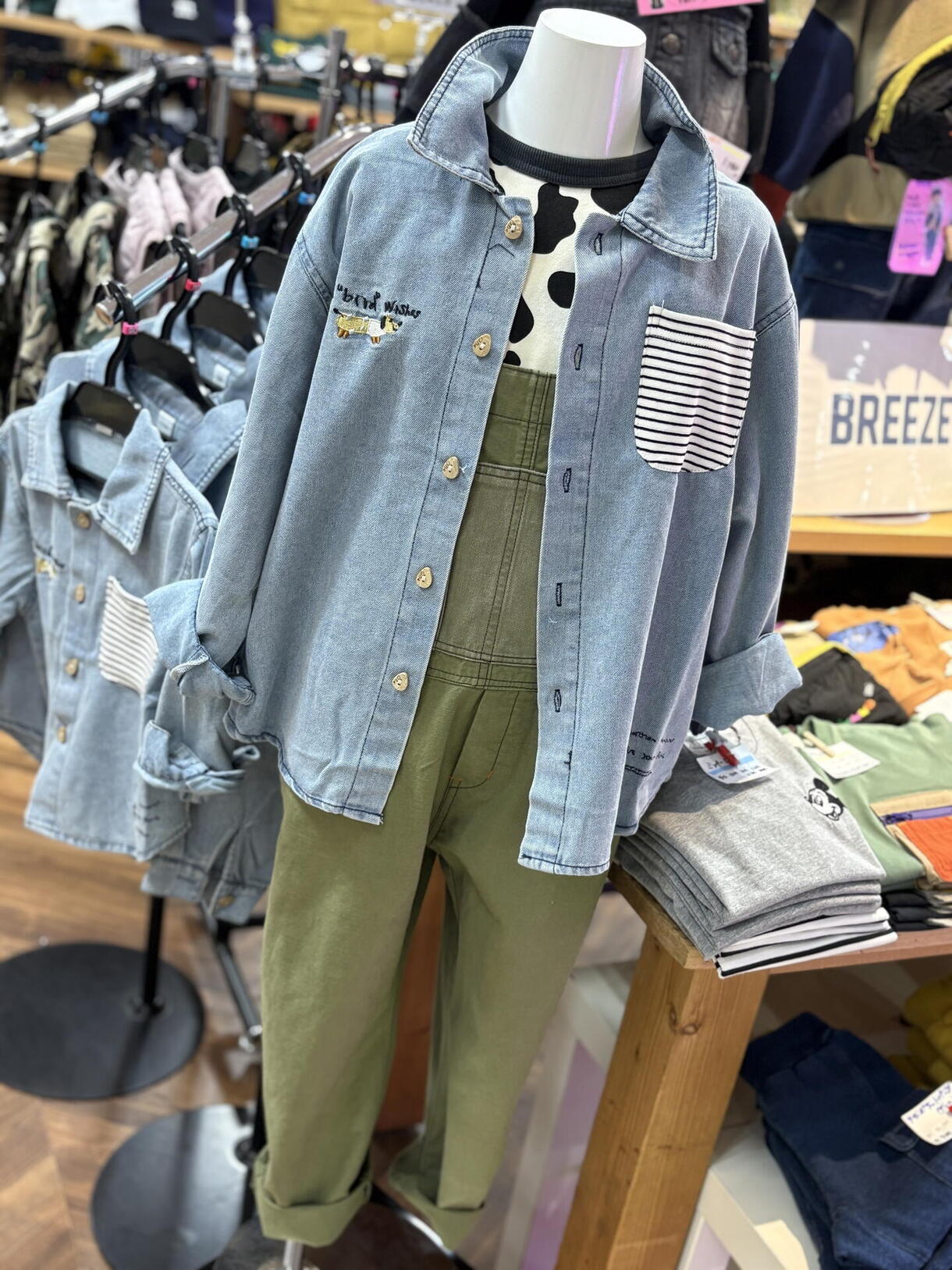 男女問わず着れて、胸のボーダーポケットや刺繍デザインがかわいい♪
