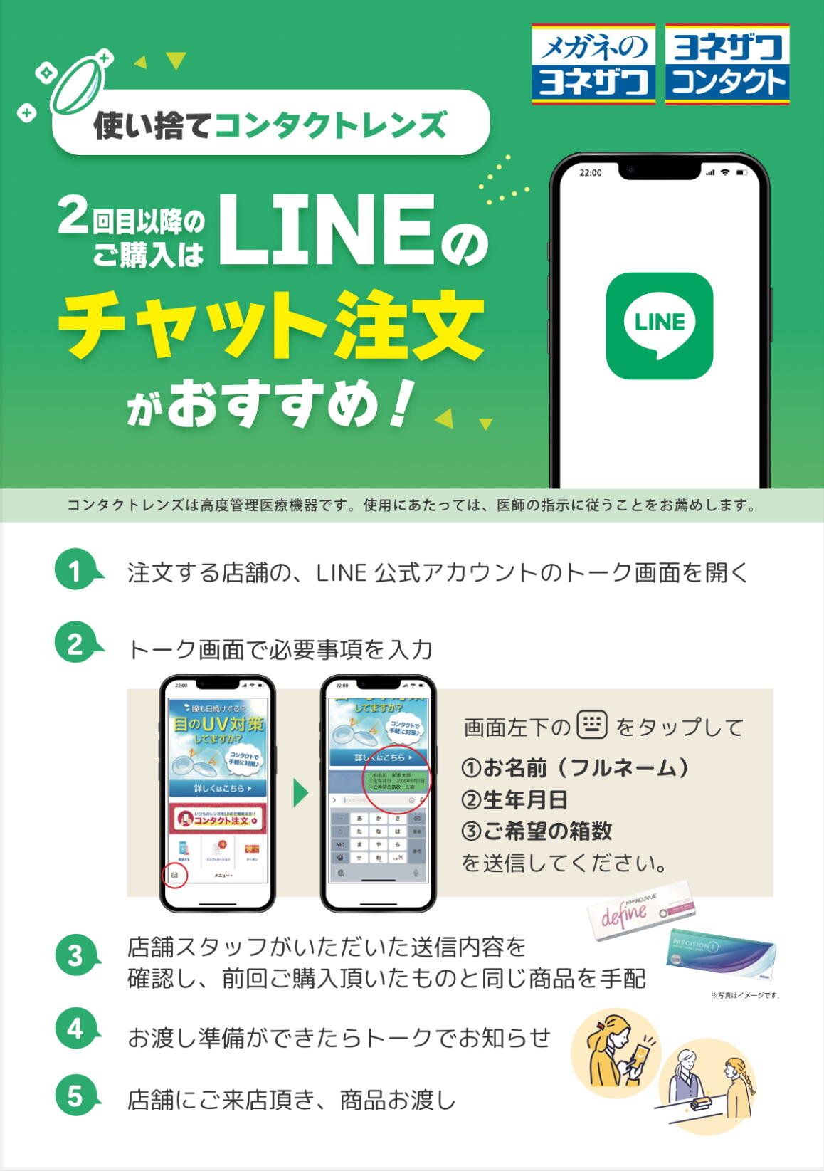 使い捨てコンタクトレンズの2回目以降のご購入はLINEチャット注文がオススメです
