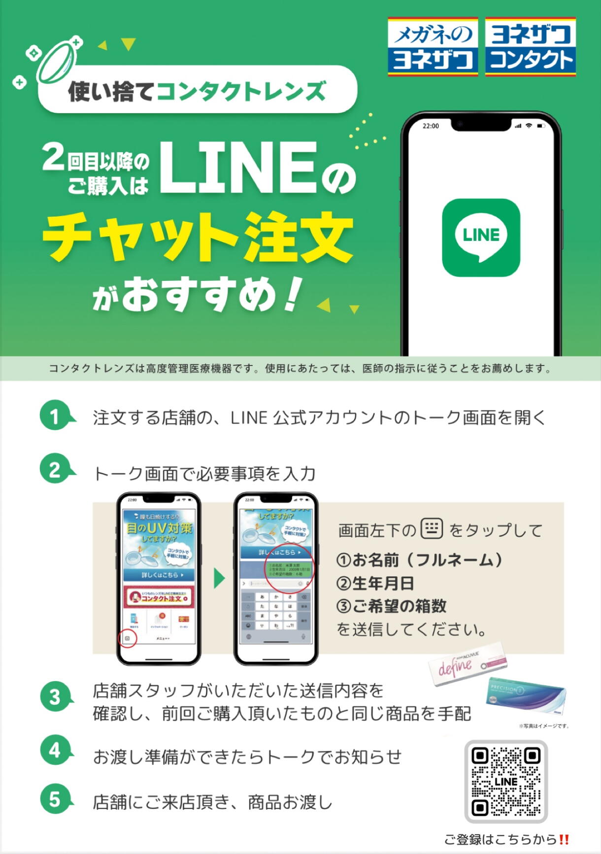 コンタクトレンズを注文できます。
