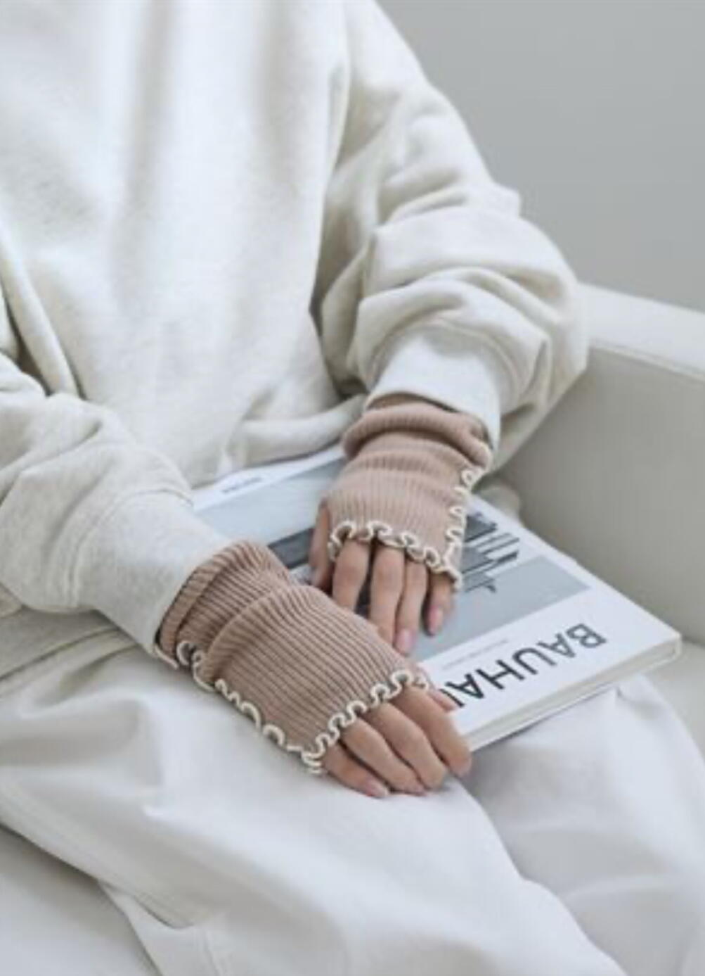 おしゃれにあたたかく。配色メローが可愛い冬のアームウォーマー。