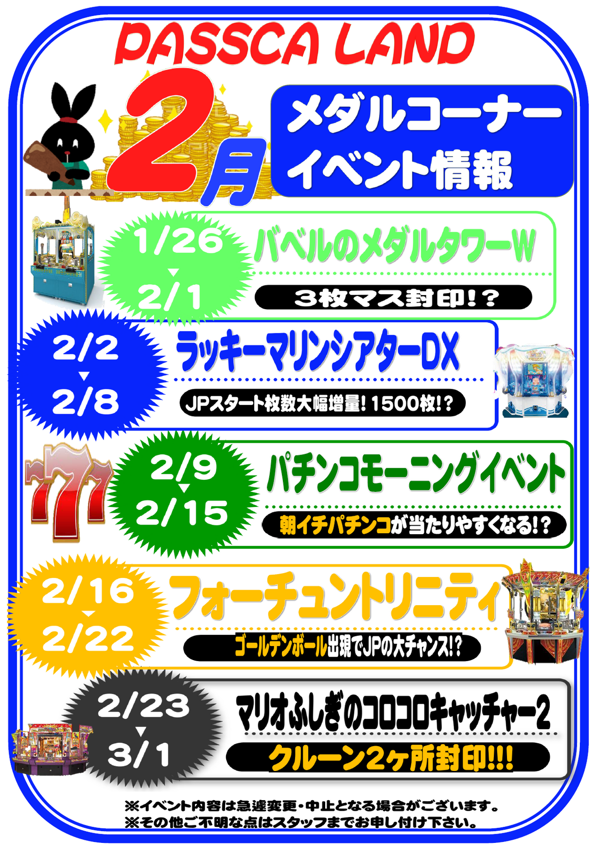 【2月パスカランド メダルコーナーイベント情報】