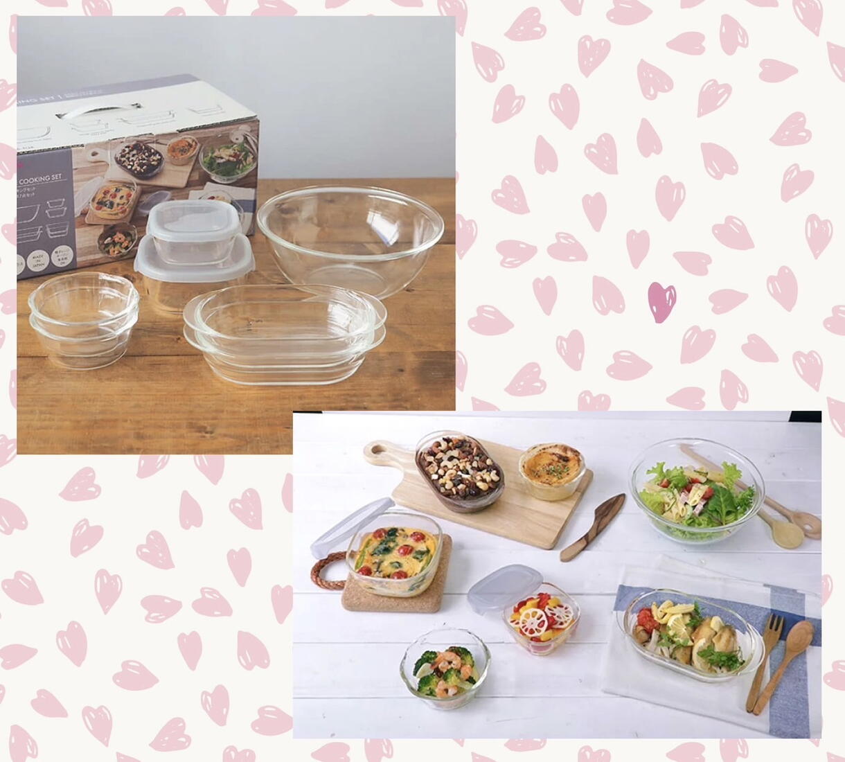 調理や保存とマルチに活躍し、調理後そのまま食器としても使いやすい耐熱ガラスの7点セット