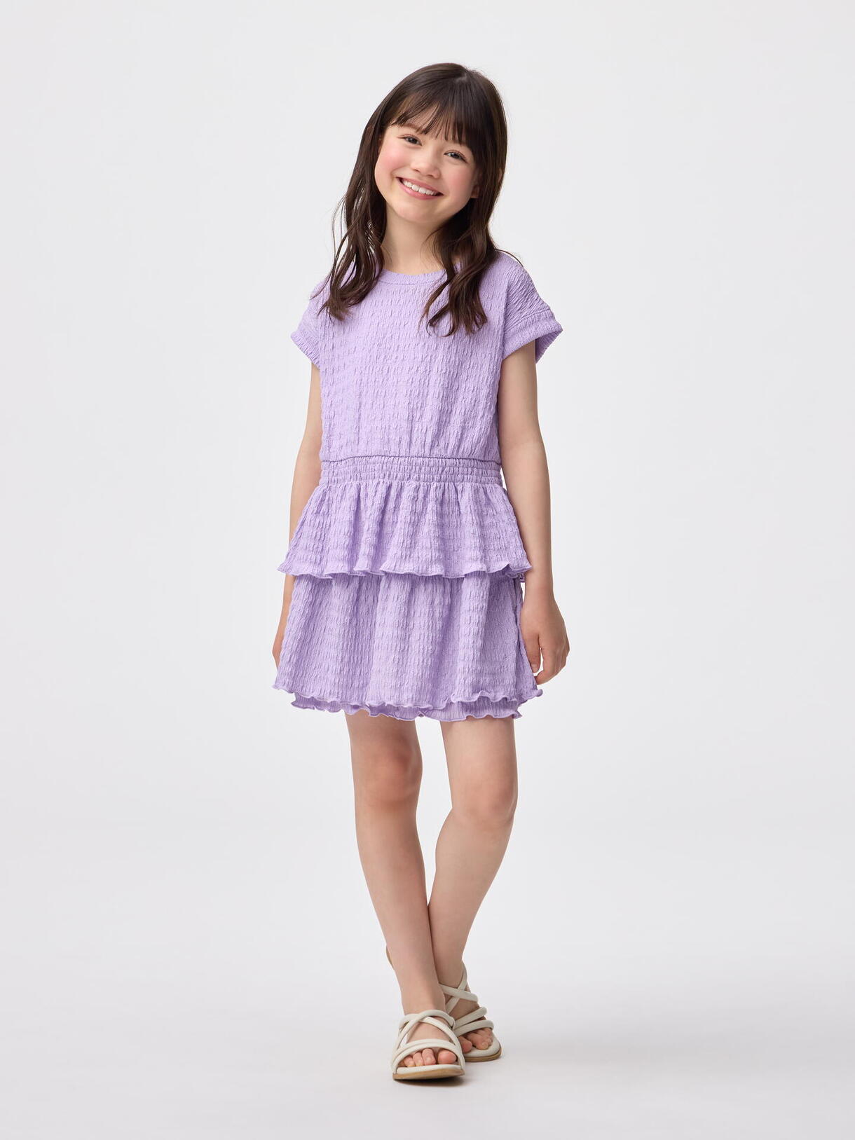同素材トップスと合わせてワンピース風に着こなすのがおすすめです。