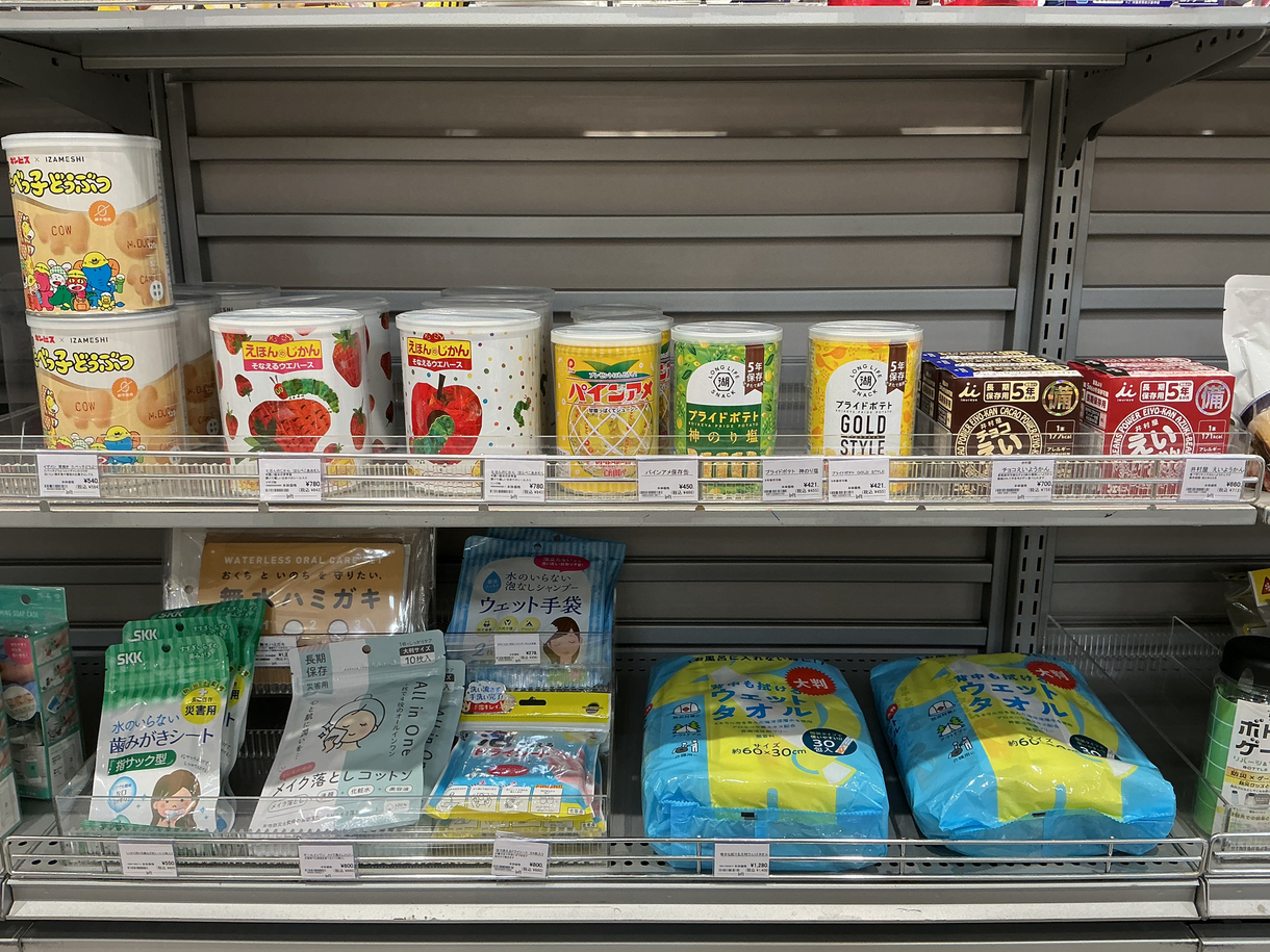 当店では長期保存ができる水や食品、水を使わずに使える衛生商品など災害時に役立つ商品を取り扱っております。