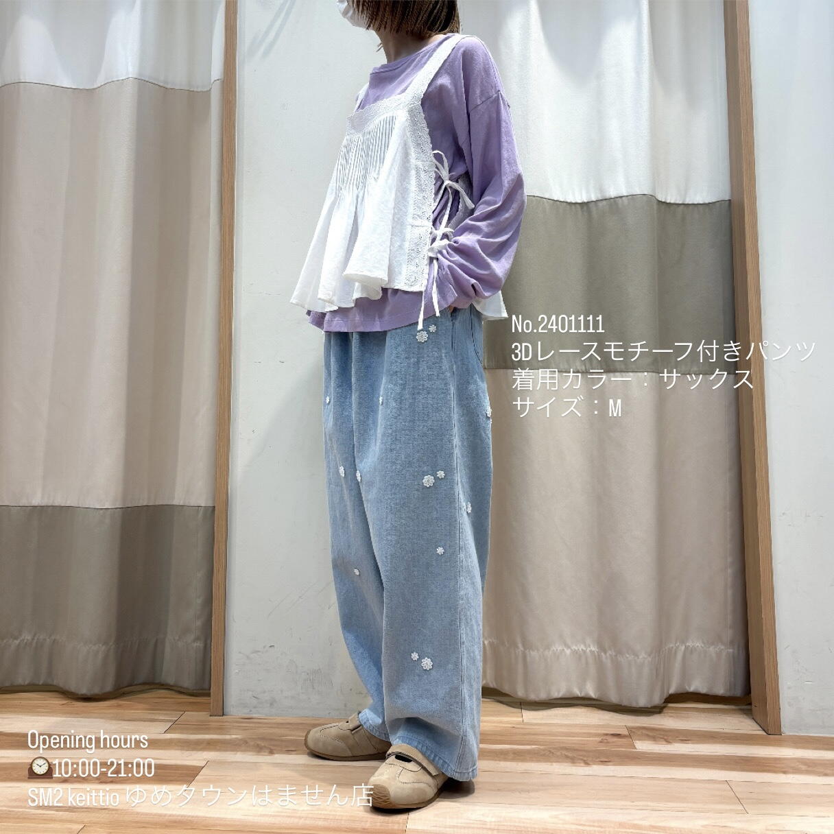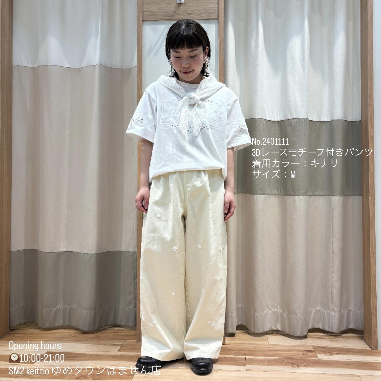 立体感のあるレースモチーフを散りばめたパンツ♪